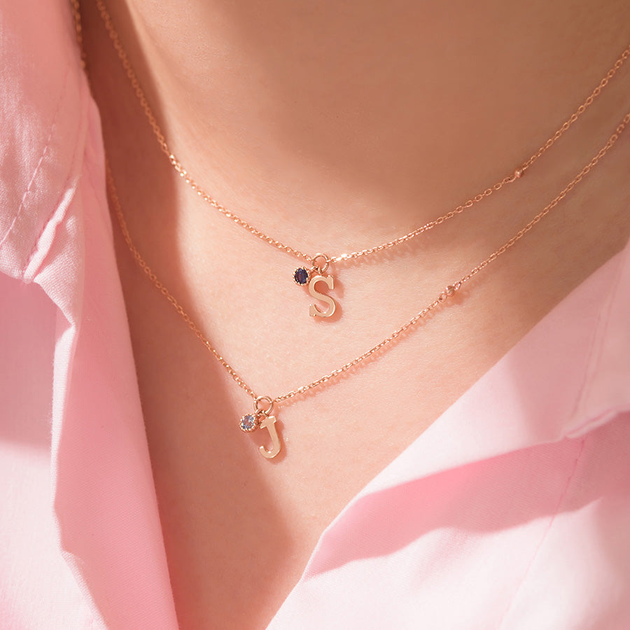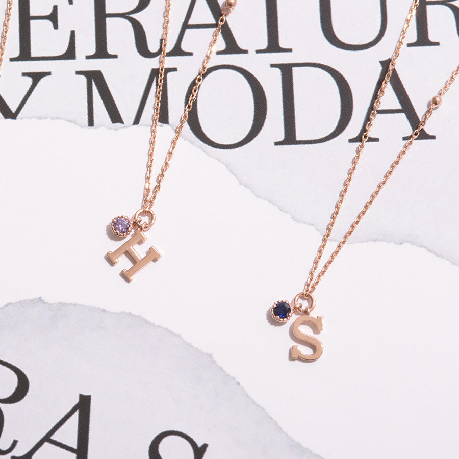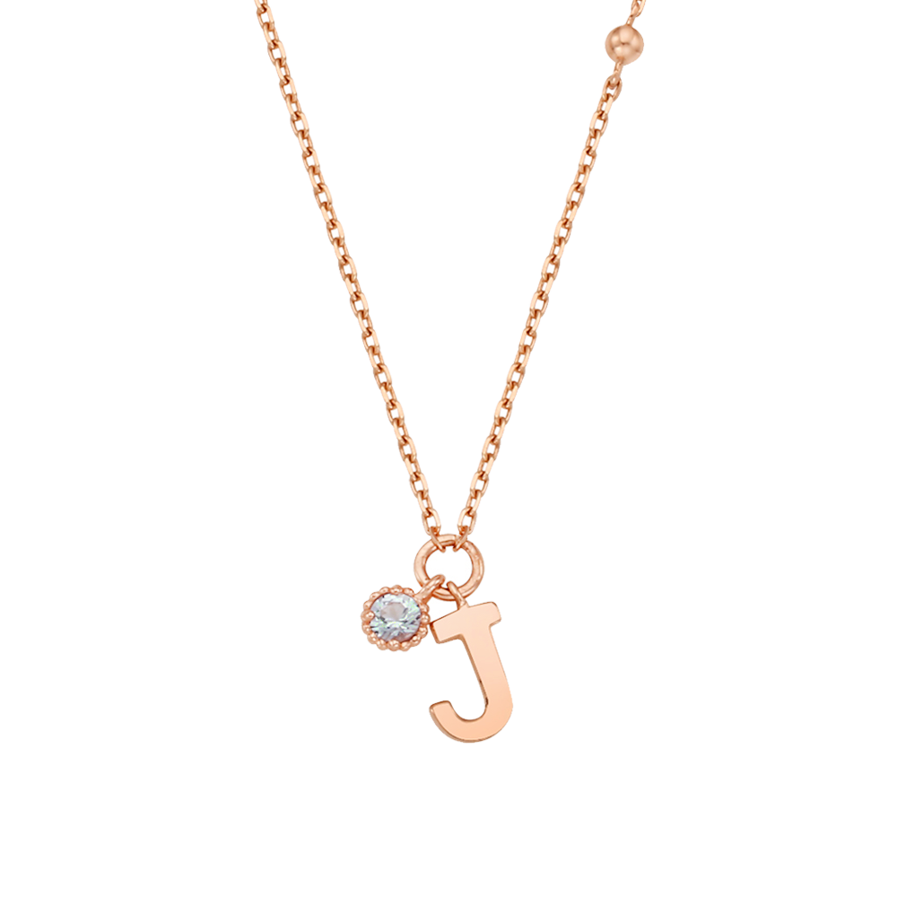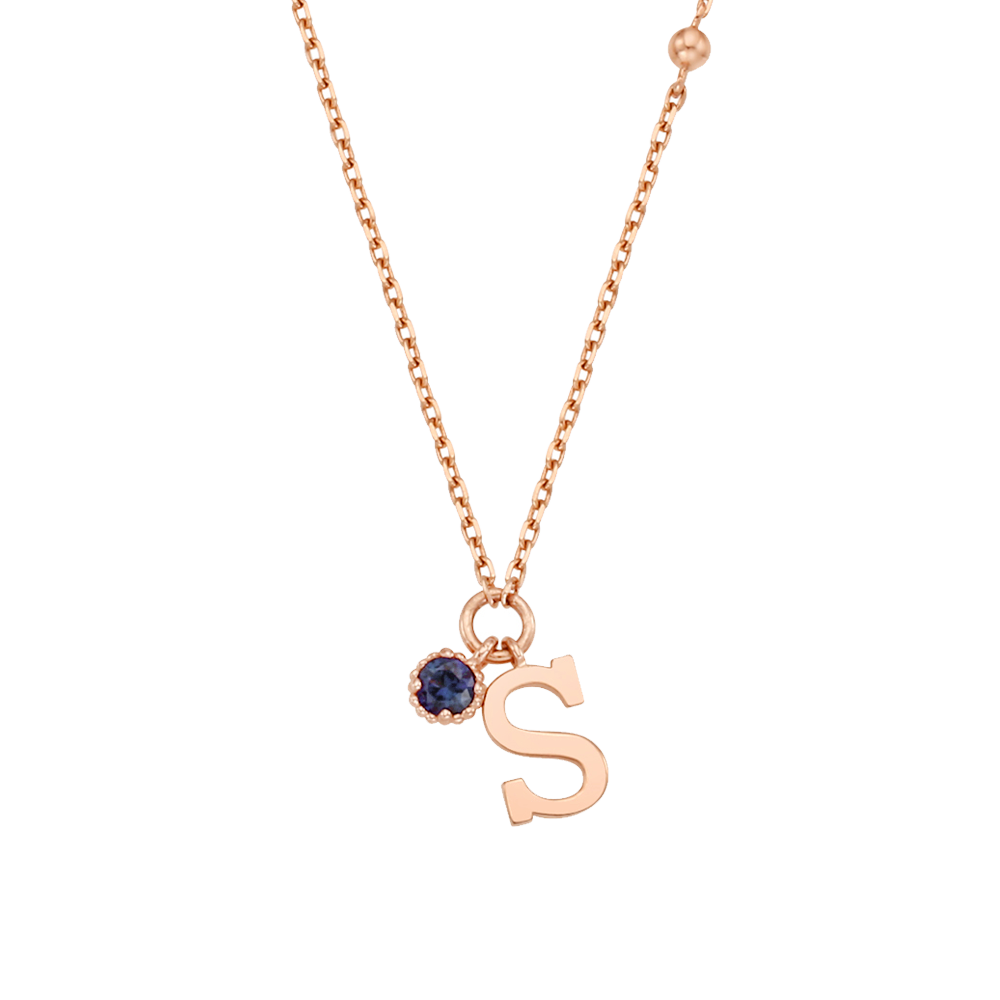 14k Rose Gold Birthstone My first Initial Necklace NJUM4034