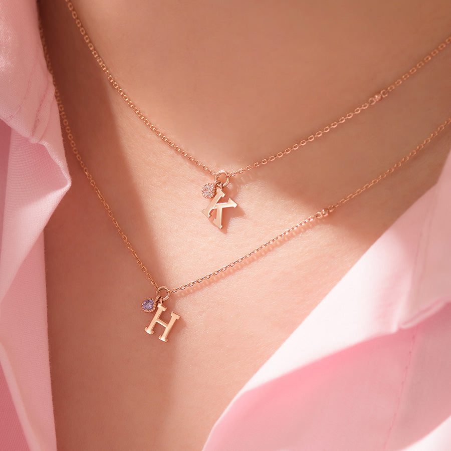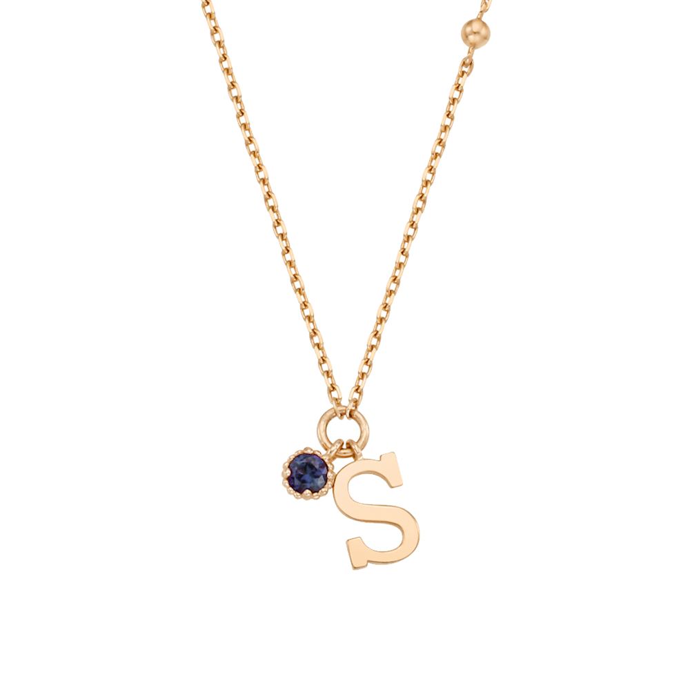 14k Yellow Gold Birthstone My first Initial Necklace NJUM4034