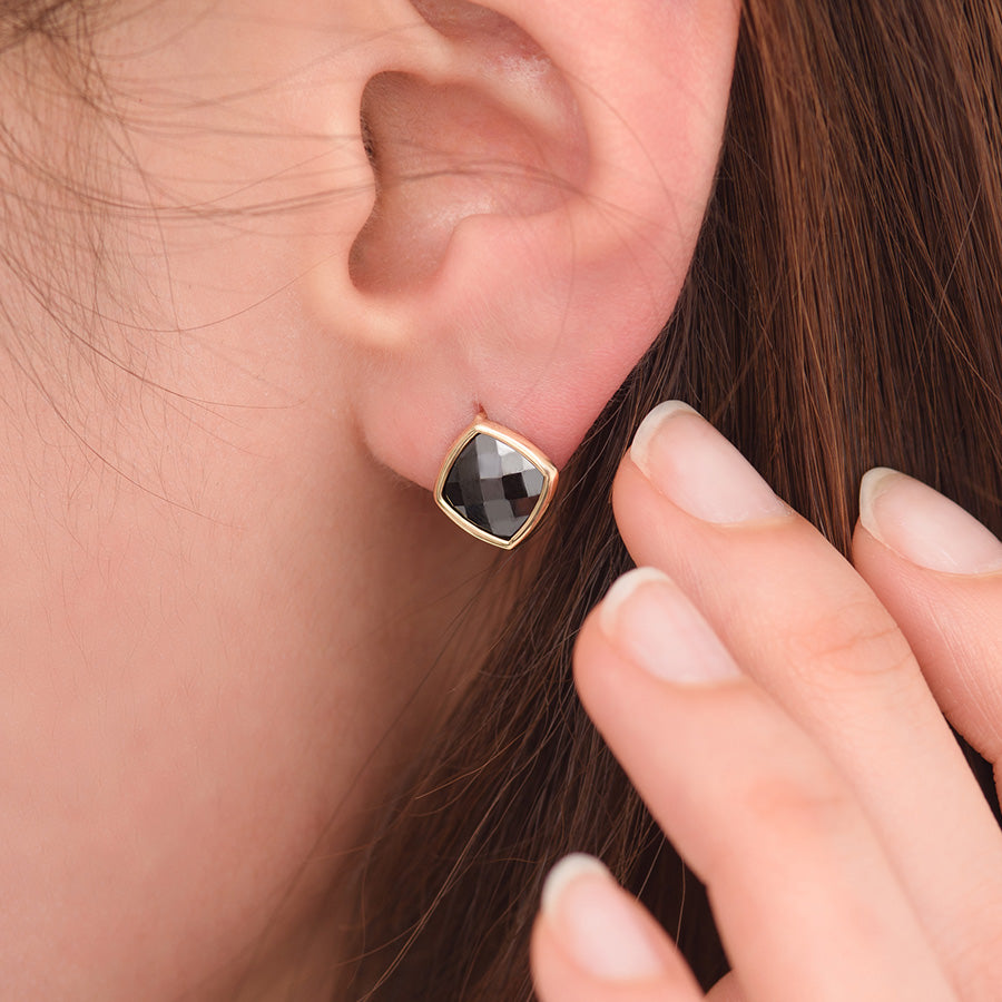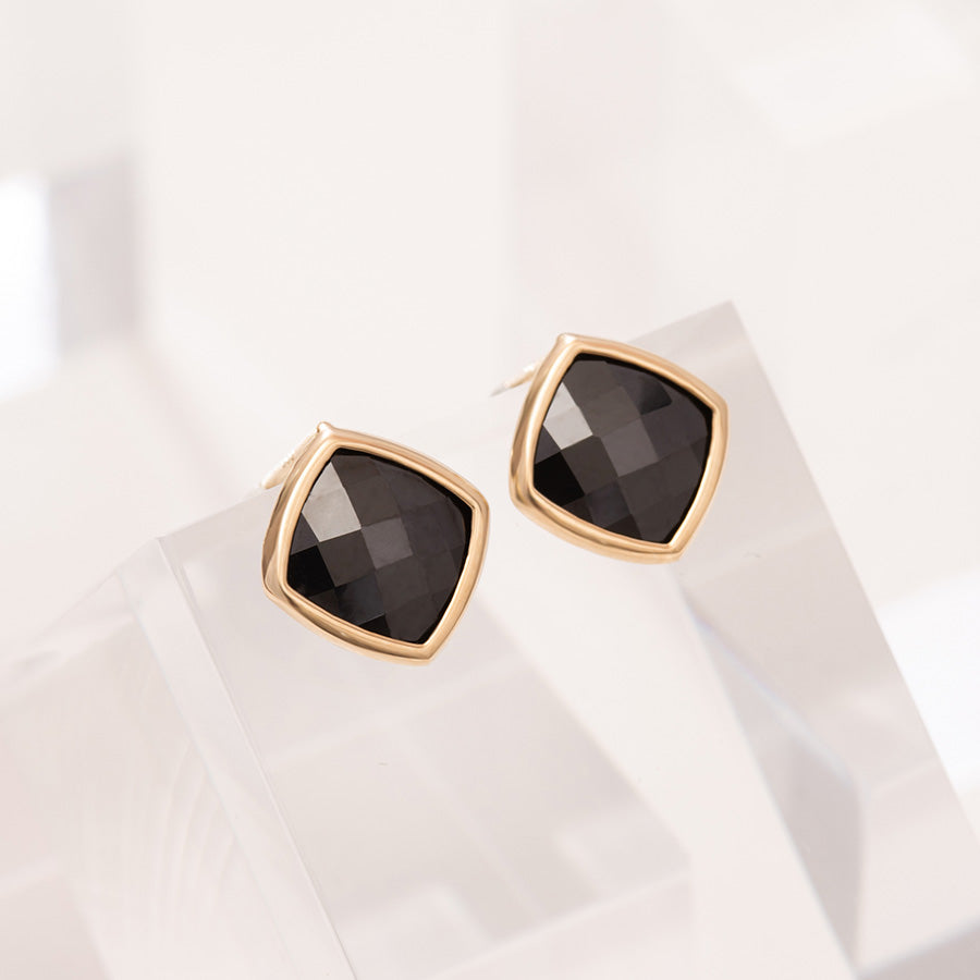 Round Squre Black Stud Earrings EJCM4259